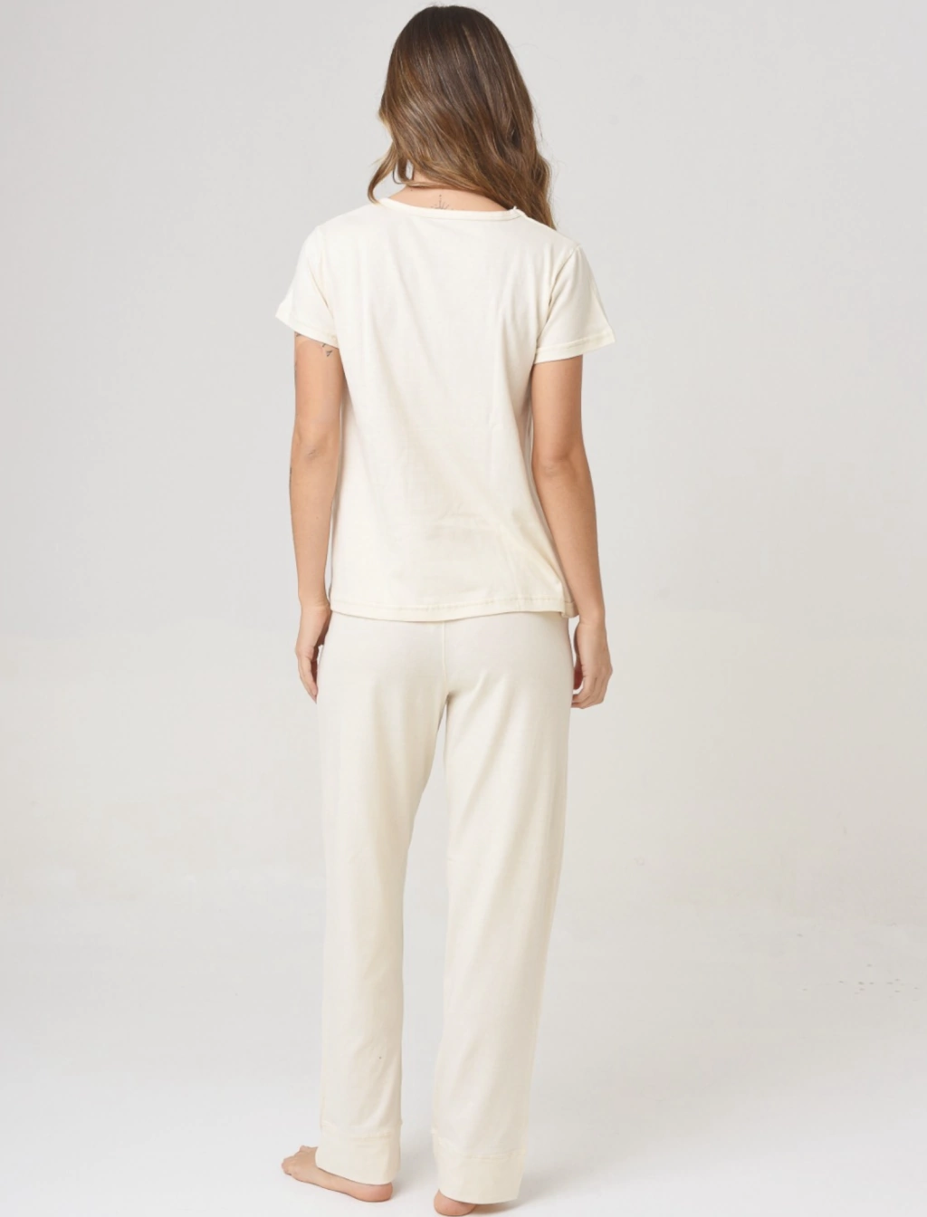 1 maxi pant liso color vainilla haciendo juego con la remera